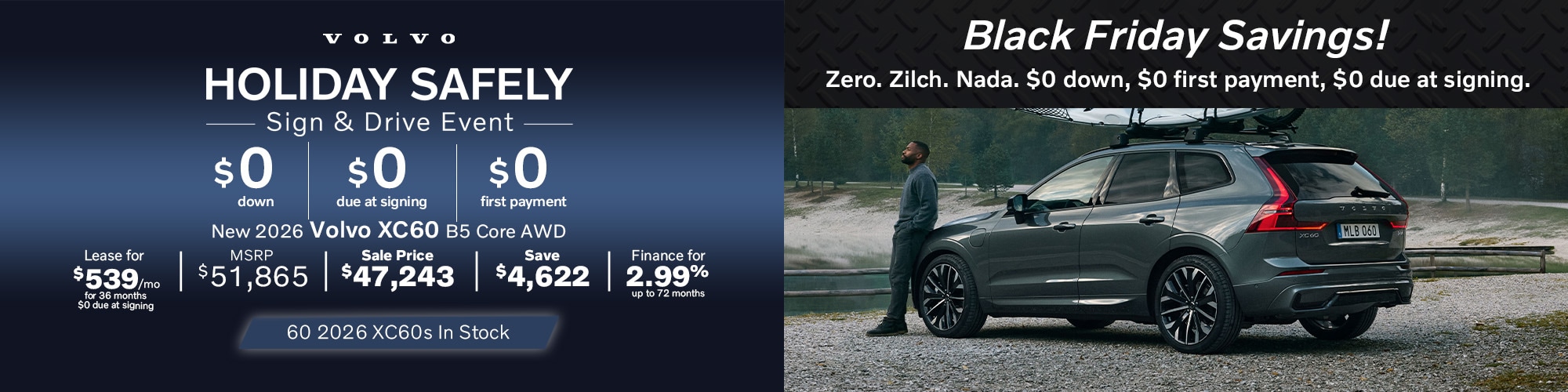 Disclaimer - Stock #T729641 MSRP $42,295, 36 Month Lease, 7,500 miles per year allowance. Zero due at Inception. Must qualify for Loyalty Bonus of $1,000, Affinity Allowance of $1000 and Executive Costco of $1,250. Lessee is responsible for excess wear and mileage over 7,500 miles/year at $0.25/mile. Offer available with approved credit through Volvo Car Financial Services (VCFS). All offers are subject to vehicle availability and must take delivery of new vehicle by 12/01//25. See Weston Volvo Cars for complete details.